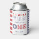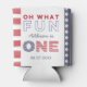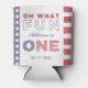 Simple and stylish "OH WHAT FUN to be ONE" design, incorporating the Stars and Stripes, shown here on a can cooler, perfect for an outdoors first birthday party celebration.