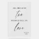 Make a beautiful statement on your wedding day with this romantic “All Because Two People Fell in Love” personalized wedding sign. Sized at 24x36, it’s perfect for welcoming guests, decorating your ceremony or reception entrance, or creating a stunning photo backdrop.