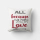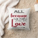 This white modern pillow features a romantic caption written in elegant red and grey fonts, that reads "All because two people fell in love", and makes the perfect gift for Valentine, anniversaries or birthdays.