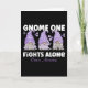 All Cancer Awareness design featuring lavender coloured gnomes with the words "Gnome one fights Alone". For anyone fighting cancer. Can also be worn during Cancer Awareness Month.