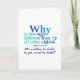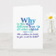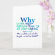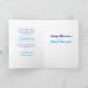 Passover card features The Four Questions. Unusual feature is the complete text of the 4 questions on an inside panel. Shades of blue. Simple, striking typographic design.