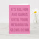 It’s all fun & games until your metabolism slows down funny birthday card. Change the colours of the font and background and personalise the inside message.