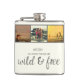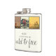 "All good things are wild and free" quote friendship photograph design flask in ivory with a Bohemian feather design. This flask makes a wonderful keepsake gift to remember past adventures while what's in the flask helps to encourage you to have more!