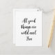 Our All Good Things are Wild and Free postcard offers a beautifully simple way to express your appreciation for the wonder and beauty of the world around us. With its sleek and minimalist design, this postcard showcases the power of calligraphy against a backdrop of stark black and white elements, delivering a statement that speaks to the heart of anyone who loves the wild and free.