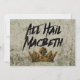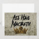 For theatrical fans of the Scottish play by Shakespeare, this design has the quote "all hail Macbeth" with a grungy image of a crown.