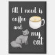 A cute and funny fridge magnet with the words All I need in is coffee and my cat. Makes the perfect novelty gift for someone who is a coffee enthusiast and loves cats!
