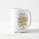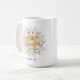 This pretty mug has a purple, green and gold watercolor wildflower wreath with the quote "All I need is a little coffee and a lotta Jesus" and is personalised with your name.