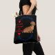 This “All I Need Is Love and My Dachshund” tote bag is designed to pop beautifully on a black background, with vibrant red lettering, playful hearts, and paw-print accents that stand out at a glance.