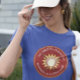 All I Need is a Sunny Day, Baseball and a Cold Beer written in classic white on dark red circle with a sunburst, baseball bats and a baseball in the centre.. Other shirt colours are avaiable.