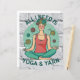 The phrase "Woman meditating with yarn, all I need is Yoga and Yarn" suggests that the woman finds both yoga and yarn crafting to be important aspects of her life. By combining the two activities, she is able to achieve a sense of relaxation, mindfulness, and creativity.