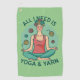 The phrase "Woman meditating with yarn, all I need is Yoga and Yarn" suggests that the woman finds both yoga and yarn crafting to be important aspects of her life. By combining the two activities, she is able to achieve a sense of relaxation, mindfulness, and creativity.