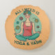 The phrase "Woman meditating with yarn, all I need is Yoga and Yarn" suggests that the woman finds both yoga and yarn crafting to be important aspects of her life. By combining the two activities, she is able to achieve a sense of relaxation, mindfulness, and creativity.