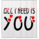 All I Need Is You decorative text and red hearts. Love and romance theme. Let the love be with you forever. Prints, gifts and t-shirts for anyone. Shower curtain to decorate your bathroom for fun and good mood. Customisable. You can change the image.