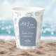 These All I Sea Is Love Dusty Blue Seashells Doodles Paper Cups showcase a dreamy dusty blue background filled with whimsical seashell, starfish, heart, and sparkle doodles, adding a soft coastal charm to your event. The cups feature a solid dusty blue arch on both sides, outlined with a thin white inner arch, beautifully framing your event details. Inside the arch, it reads “All I Sea Is Love” at the top, followed by room for the bride’s name, “Bridal Shower,” a seashell motif, and the date. Perfect for ocean-inspired showers, beach themes, and soft romantic palettes, all elements are fully editable to suit your needs.