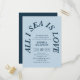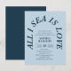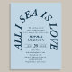 Drift into celebration with a Bridal Shower Invitation that captures the romance of open water and the warmth of a love that runs deep. At the heart of the design, the words All I Sea is Love curve gracefully in an elegant retro serif font, arranged in a sun-kissed arch that feels as breezy and beautiful as a morning on the shore. The soft, soothing blue palette washes over every detail, evoking salt air, endless horizons, and the quiet magic of two people finding their forever in each other.