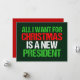 All I Want for Christmas is a New President card. Political humour Anti Trump cards for the holidays in red and green script for the election.