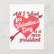 All I Want for Valentine's Day is a new president postcard. A hilarious political Democrat gift for your Valentine who hates Donald Trump. Forget romance and get this funny anti POTUS political humour design on a heart for Valentines Day.