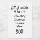 I don’t need jewellery, clothes, shoes and cars. All I wish for is You. Unique and funny design. A perfect match for clothing, T-shirts, accessories and other items. Great gift idea.