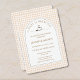 Celebrate the upcoming arrival with this charming “A Baby Is Brewing” coffee-themed baby shower invitation featuring a cozy beige gingham background and warm caramel typography. Designed with a stylish café aesthetic, this invitation includes a matching back with diaper raffle details, books for baby request, and QR code registry information. Perfect for gender-neutral baby showers, fall celebrations, brunch events, and coffee-lover themes. Fully customizable with names, dates, location, and RSVP details for a polished and memorable celebration.