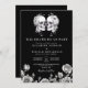 This black and white 'till death do us part' gothic floral skulls wedding invitation can be personalised with your information and wedding details in modern typography. Designed by Thisisnotme©