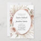 All in One Boho Blush Pink Floral Rose Gold Oval Dried Palm Leaves Wedding Invitation... Our boho "All in One" floral wedding invitation features an arrangement of beautiful blush pink roses, eucalyptus, and dried palm leaves around a faux rose gold metallic foil oval frame creating an elegant border for the invitation text within. The back of the invitation contains all of the details you would typically see on separate cards within the wedding packet. This modern style all-in-one wedding invitation was designed to be both elegant and budget conscious... not to mention time-saving. On the back there is also a QR code graphic template you can replace with your own code (or delete if you don't plan to use one). All example text can be easily revised with your own information on the personalisation template.