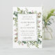 This Christmas wedding invitation features painted watercolor red berries, pine branches, eucalyptus, green leaves with a green rectangle frame. Save paper by including the details and RSVP on the back of the wedding invitation. For more advanced customisation of this design, please click the "Customise Further" link!
