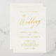 All in One Elegant Gold Calligraphy on Cream Wedding Invitation with Details and QR Code on Back... Our unique "All in One" gold and cream wedding invitation features elegant real gold foil handwriting calligraphy combined with serif text for a classic and elegant wedding invitation on a delicate cream background. The back of the invitation contains all of the details you would typically see on separate cards in the wedding packet, including reception time and venue, accommodation options, wedding website, RSVP and gift registry information. This modern style wedding invitation was designed to be both elegant and budget conscious... not to mention time-saving. On the back there is also a QR code graphic template you can replace with your own code (or delete if you don't plan to use one). All example text (aside from the graphic calligraphy elements) can be easily revised with your own information on the personalisation template.