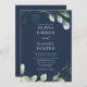 All in One Eucalyptus Navy Blue QR Code Wedding Invitation