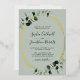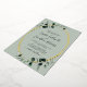 All in One Eucalyptus Real Gold Foil Sage Wedding Invitation... Our "front and back" luxe botanical wedding invitation features a real gold foil oval frame embellished with emerald-hued eucalyptus leaves over a light sage green background. The light sage back of the invitation contains all of the details you would typically see on separate cards in the wedding packet. This modern style wedding invitation was designed to be both elegant and budget conscious... not to mention time-saving. All example text can be easily revised with your own information on the personalisation template.