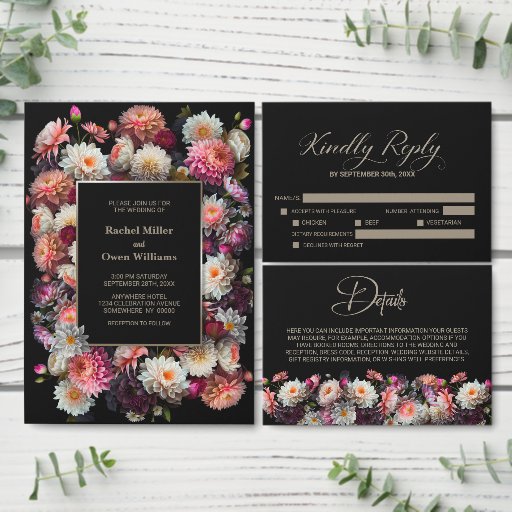 All In One Moody Black Floral Wedding Invitation