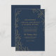 All in One Navy Blue Gold Minimal Leaf Wedding Invitation