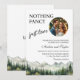 An elegant Wedding Invitation with watercolor mountains and pine trees that you can customise with your details.