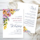 Invite your friends and loved ones to celebrate your union with this all in one wedding invitation, featuring elegant pink and orange florals inspired by enduring love. The customisable text allows you to effortlessly add the bride and groom’s names, wedding date, and the necessary details of your celebration. Designed for the budget-savvy couple, the reception venue location, RSVP response request, accommodation details, and any other information your guests may require can be included on the reverse side of this invitation, saving money on extra stationery. A variety of paper types and corner styles are available for your unique invitations, along with the option to download if you prefer a digital format.