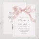 Soft pink all in one baby shower invitation featuring a sweet bow design for a baby girl celebration. Designed with a tear off RSVP postcard for easy guest responses while keeping a charming coquette inspired look. Ideal for baby girl showers, sprinkle parties, and elegant brunch celebrations. Editable text on both panels. Print-ready folded layout.