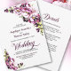 Invite your friends and loved ones to your wedding with this all-in-one rustic pink floral wedding invitation. Designed for the budget-savvy couple, this invitation includes the reception information, RSVP request details, and any other information you may wish to include on the reverse side of the invitation, saving you the cost of purchasing extra postage and wedding stationery.