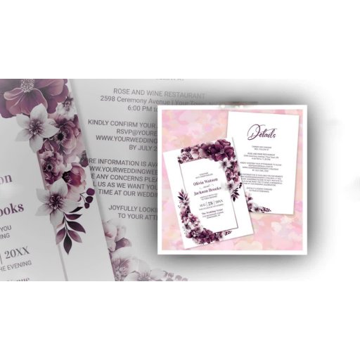 All In One Pink Plum Floral Wedding Invitation