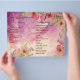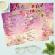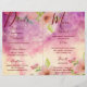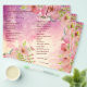Fresh and youthful style. Cute and elegant floral wedding program, and wedding details information. Pink handmade watercolor wild roses on pink watercolor background. Edit background and flower photo filter.