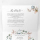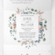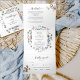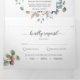 Lay out all the details for your wedding with this all in one elegant floral invitation, no need for extra insert cards or rsvp! Middle inner section showcasing your invitation details, while on the top section you can add any reception, accommodation, transportation, gifts, website details you like. Below guests can easily cut away RSVP postcard and place in the mail! Edit information on text boxes or select customise to make adjustments on editing screen. Exquisite elegant watercolor hand painted floral details in all sections with flowers and foliage in mauve grey, butter cream, dusty blue, blush, peach, dusty rose and green tones. Gorgeous pale pink foliage and Eucalyptus greenery. Part of our "Blissful wedding and events collection". Also available with couple's photograph in the back.