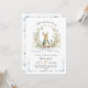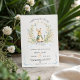 Adorable All in One watercolor baby shower invitation featuring a sweet little bunny rabbit in a charming coat, nestled in a delicate floral wreath with soft blue and pink blooms. "A Little Bunny is on the Way" – perfect for welcoming your baby boy or gender-neutral celebration! Includes space for your custom details: date, time, location, and a handy QR code for easy registry access. Ideal for a whimsical Peter Rabbit-inspired theme or spring/summer shower. Personalize easily and order today for a memorable invite that delights guests!