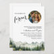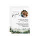 An elegant Wedding Invitation with watercolor mountains and pine trees that you can customise with your details.