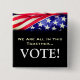 Our All In This Together VOTE Square Button a reminder to be sure to VOTE in ALL elections! Democracy is at stake. Americana inspired design features American flag motif joined with white text against a black background. Voting is more important than ever in these challenging times. Volume discounts available!