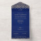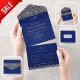 All Inclusive Blue Gold Lace Wedding with RSVP In One Invitation