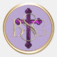 ALL INITIALS Gold 3 Monogram Purple Cross Classic Round Sticker