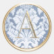 ALL INITIALS Gold Monogram Blue Damask Classic Round Sticker