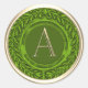 ALL INITIALS Gold Monogram Green Laurel Wreath Classic Round Sticker