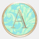 ALL INITIALS Gold Monogram Turquoise Aqua Damas Classic Round Sticker