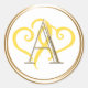 ALL INITIALS Gold Monogram Two Yellow Hearts Classic Round Sticker