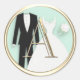 ALL INITIALS Gold Monogram Wedding Mint Green Classic Round Sticker