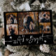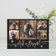 Minimal and modern holiday photo template card featuring 5 photos on the front with a hand written script text that says "all is bright" with stars. You can also add another picture and message on the back. The background is black.