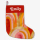 All is Bright this Christmas with a whimsical brightly coloured holiday stocking design featuring rainbow arches in bold pinks, oranges, red and gold. Personalise the text template with your name. This happy colourful sticking is sure to brighten your home during the Christmas holiday season. The feminine colour palette works beautifully for women, children and anyone who facies riotous colour!